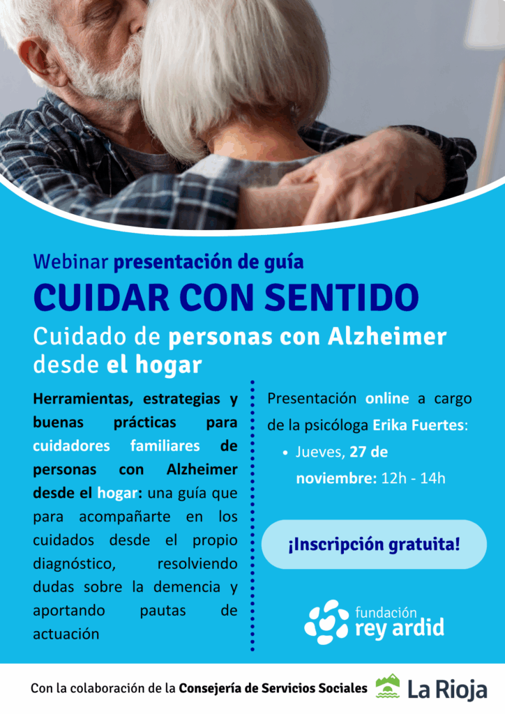 Cada persona que se inscriba recibirá la versión digital de la guía “Cuidar con sentido: Guía de buenas prácticas para los cuidados de personas con Alzheimer en el hogar”, desarrollada por Fundación Rey Ardid, con la colaboración de la consejería de Servicios Sociales de La Rioja. Asimismo, se enviará unidades muy limitadas en formato físico entre los inscritos.