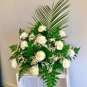 Rinde homenaje con sencillez y elegancia con nuestro centro de 12 claveles frescos, una opción clásica y emotiva para el Día de Todos los Santos. Disponible en rojo o blanco y elaborado con claveles de alta calidad, es un arreglo floral sobrio y respetuoso para recordar a tus seres queridos. Ideal para cementerios o espacios conmemorativos.