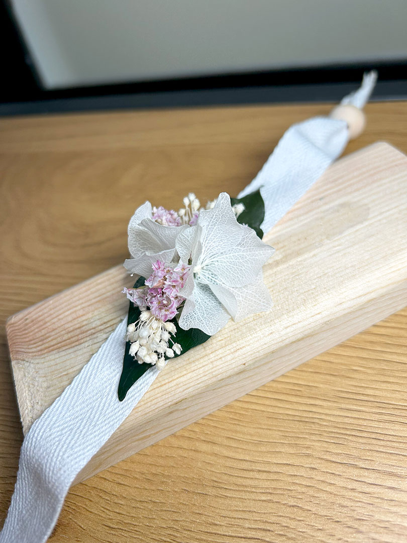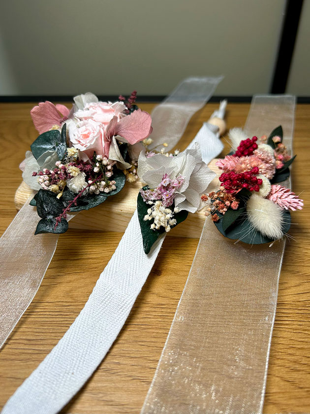 La Pulsera Eternal es una creación exclusiva diseñada especialmente para novias que buscan un detalle floral elegante y duradero. Está confeccionada con rosas preservadas y una cuidada selección de flores y follaje natural tratados para mantener su frescura y color en el tiempo. No necesita agua y conserva intacta su belleza más allá del día de la boda. Es el complemento ideal para realzar cualquier estilo nupcial, desde el más clásico hasta el más contemporáneo, aportando un toque romántico y sofisticado.