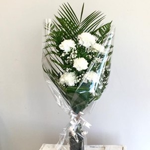 Este ramo está elaborado con 6 claveles de alta calidad, acompañados de verdes naturales que aportan un toque elegante y armonioso. Puedes elegir entre claveles blancos, rojos o combinados, y si lo deseas, incluir una cinta con mensaje personalizado. Su tamaño lo hace cómodo de transportar y fácil de colocar, manteniendo su frescura el tiempo necesario. Un gesto simbólico que expresa amor, recuerdo y respeto de forma sencilla y cercana.