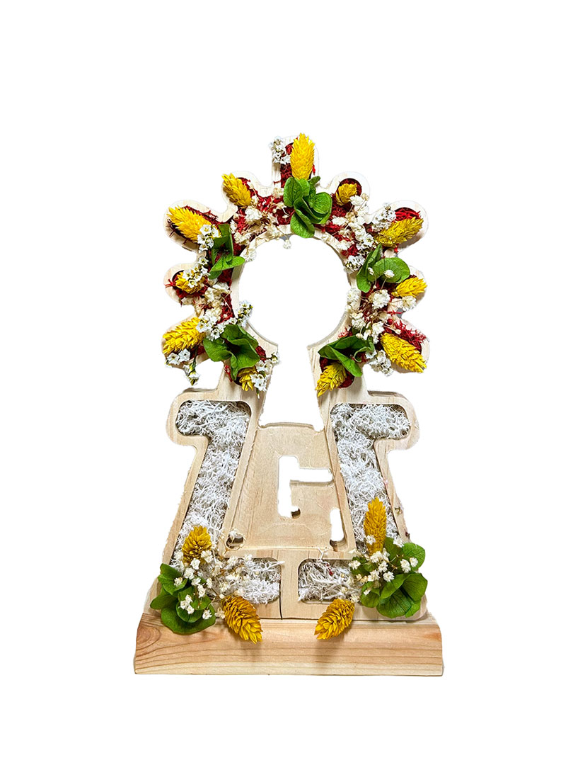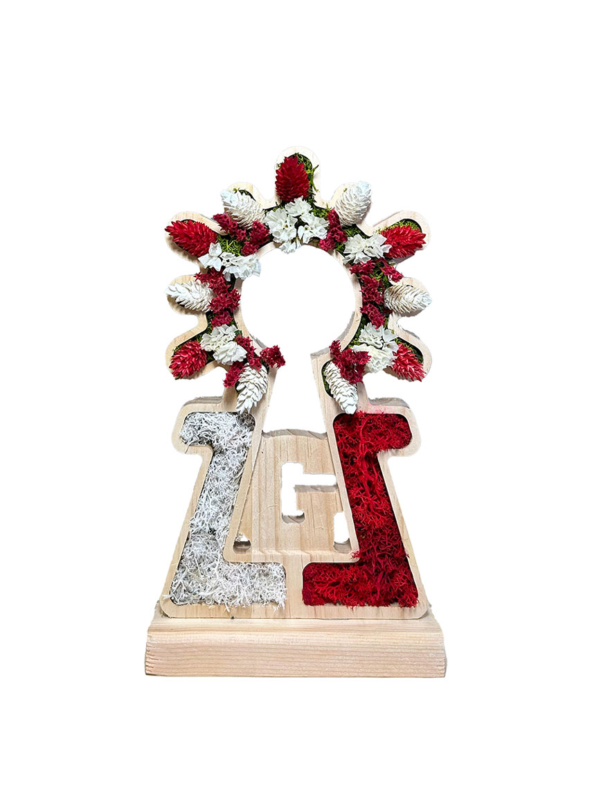 Esta pieza única combina la figura de la Virgen del Pilar con las letras Zgz, homenajeando a Zaragoza de una forma creativa y emotiva. Realizada con flores y musgo preservado de alta calidad, se conserva intacta durante años sin mantenimiento. Puedes personalizar los colores florales o añadir un mensaje para que sea aún más especial. Es un detalle ideal para regalar en las Fiestas del Pilar, a zaragozanos que viven lejos o como símbolo decorativo que conecta con tus raíces. Arte, tradición y orgullo local en una sola pieza.